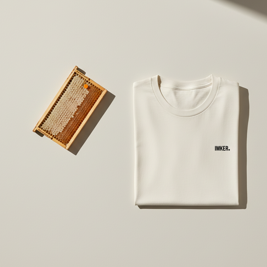 Minimalistische Prints für Imker – klein auf der Brust, groß im Stil. Clean, tragbar, zeitlos.
